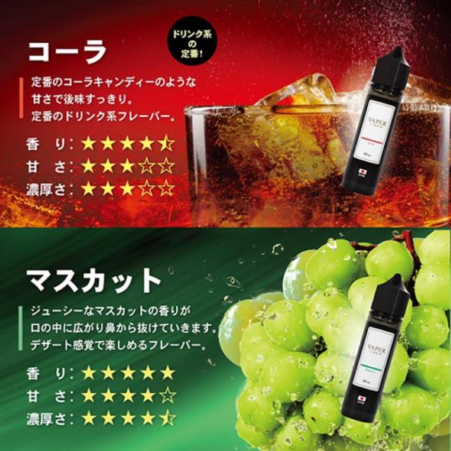 ベイパーリキッド 電子タバコ リキッド ベイプ VAPE 60ml 日本製 マスカット メンソール 国産 フレーバーリキッド ニコチン0 ノンタール タバコ 禁煙