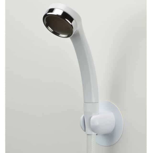 以前のシャワーフックを取外した後の壁の汚れや使用しないビス穴が見えてしまうトラブル…そんな見えてほしくないものを隠す汚れ隠しプレート付きのシャワーフックだよ。