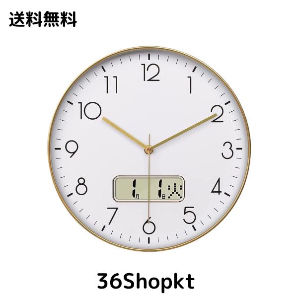 ◆商品名:Nbdeal 掛け時計 電波時計 静音 連続秒針 おしゃれ 日付 曜日表示 直径30cm 壁掛け 時計 北欧 (ゴールド)