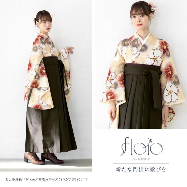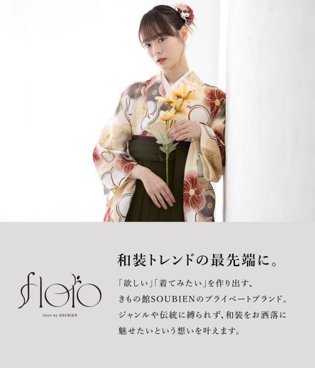 袴セット 卒業式 大学生 小学生 レディース 女の子 セット 創美苑オリジナル floro 黄 白 チャコール 花 和装 着物 販売 購入 送料無料