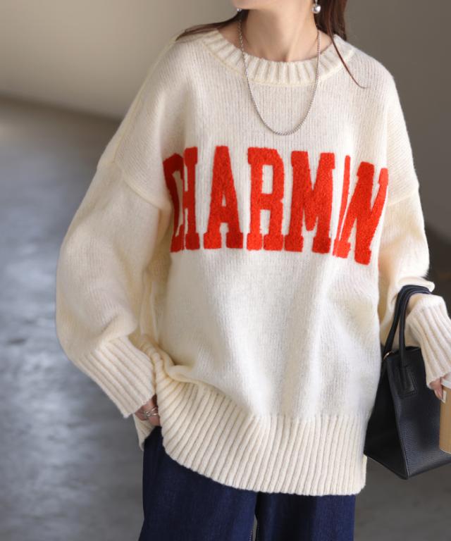 立体的なもこもこのボアロゴワッペンがアクセントになるニットです。