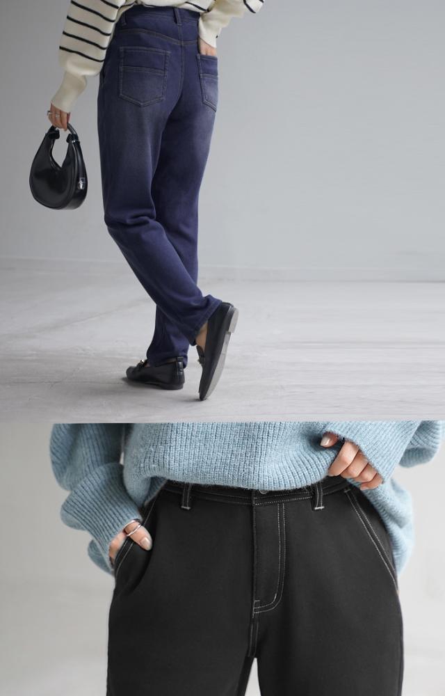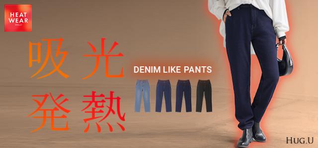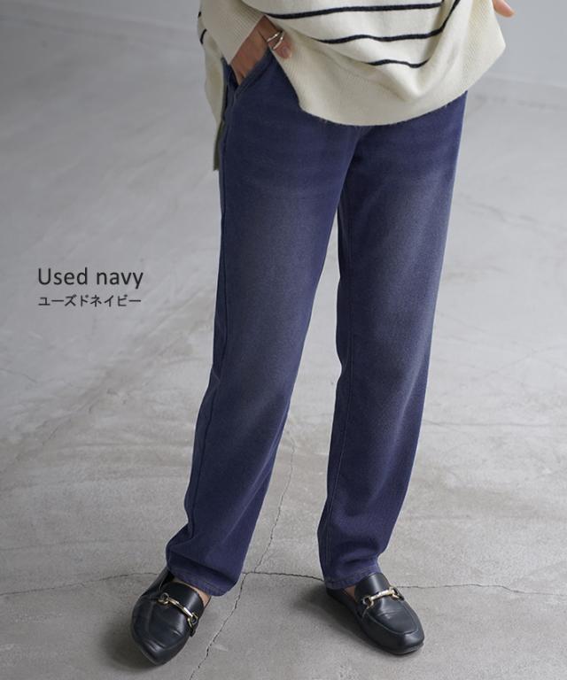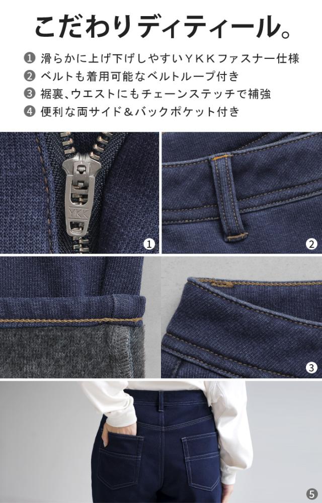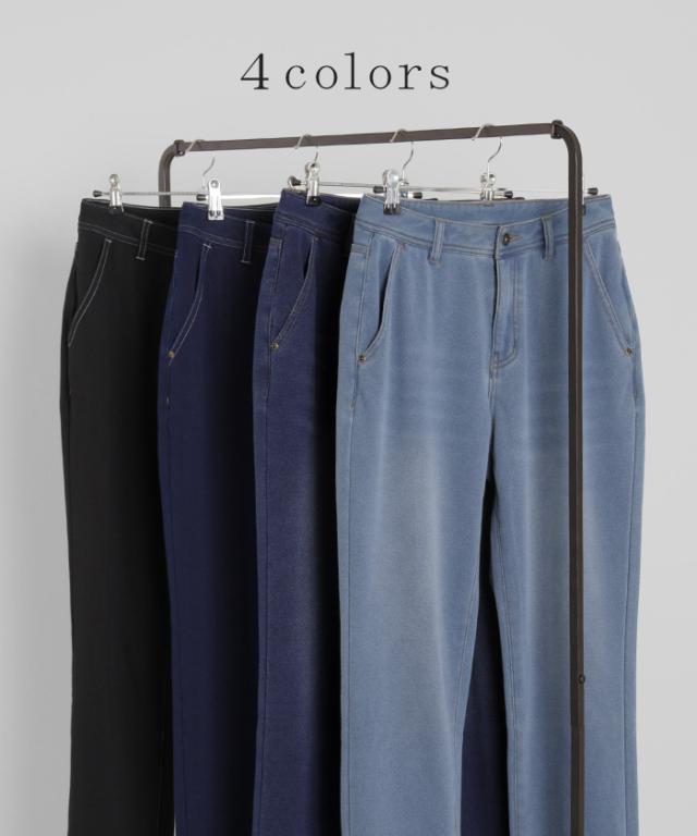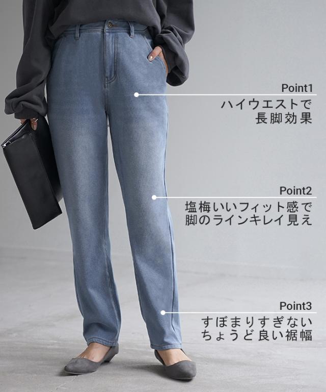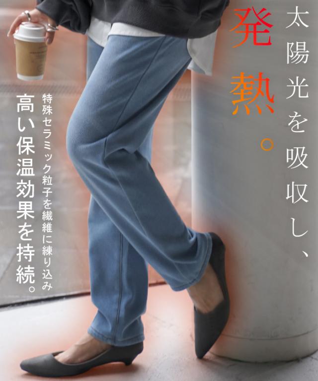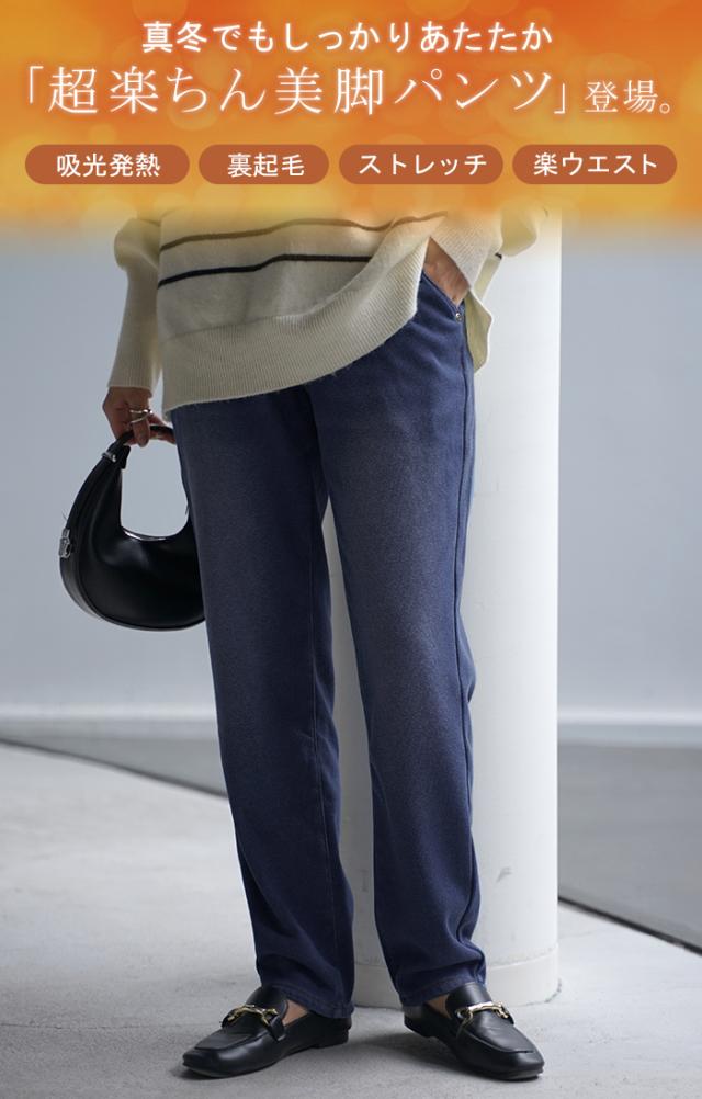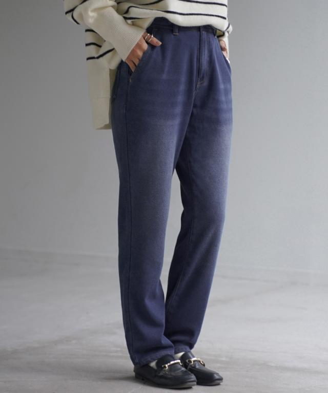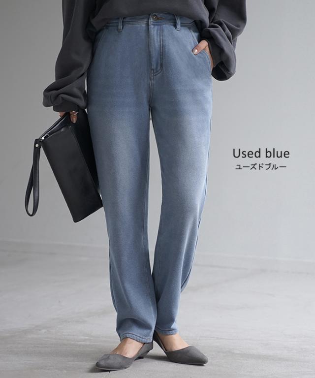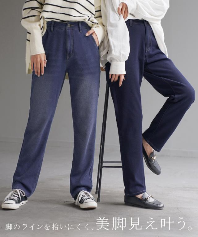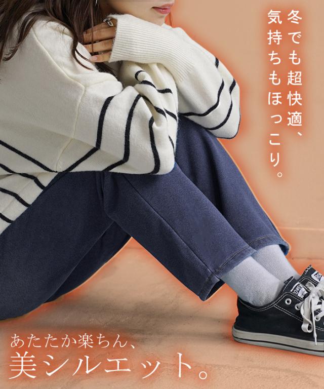 【冬SALE】 パンツ 「 光 吸収 発熱 」デニム 風 ニット テーパード レディース テーパードパンツ ワイド ワイドパンツ ロング ロングパンツ 体型カバー ボトムス ストレート ズボン ゆったり ストレッチ 大きいサイズ 裏起毛 体型カバー ブルー 秋 冬 HUG.U 秋新作