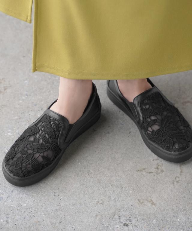 素足でも履けるきれいめなシアーレースアッパースニーカーです。