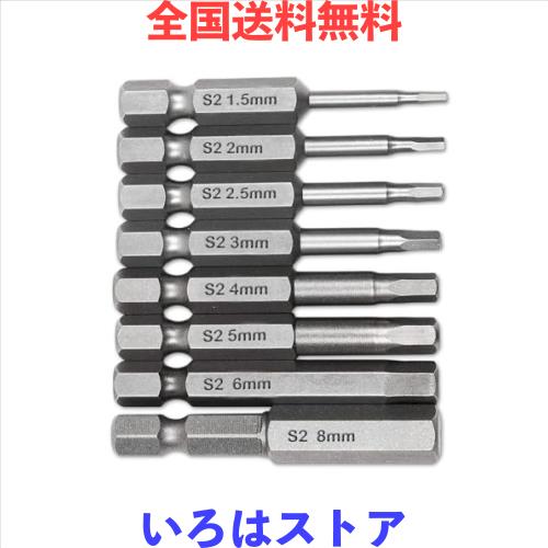 六角レンチビット 精密ドライバーセット 6.35mm 磁気吸着 ヘキサゴンビット 50mm長 H1.5-H8 電動ドライバー ビット工具 8本入り