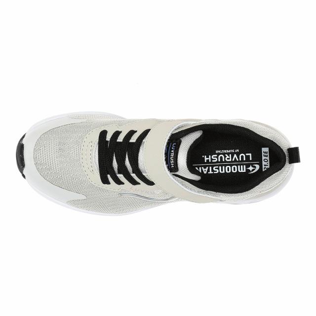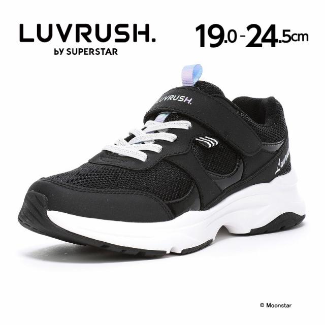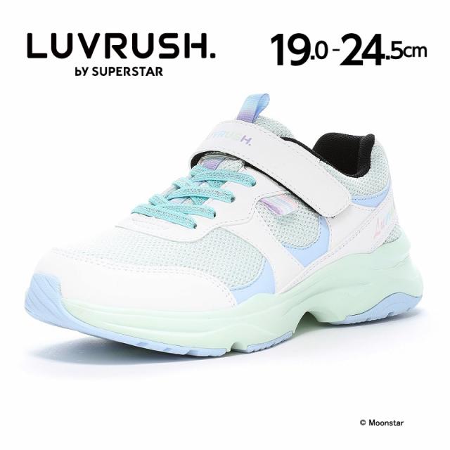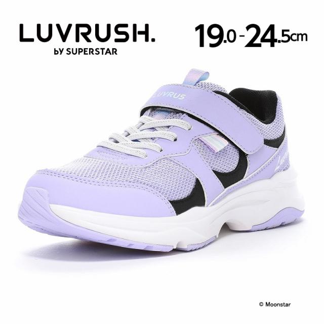 『もっと可愛く!もっと速く!女の子のスポーツシーンを足元から応援!』をコンセプトにガールズ向けに誕生した「ラブラッシュ バイ スーパースター」のジュニアシューズです。「速く走る」を体現するために搭載されたパワーバネが走りをアシストします。重さは21.0cmで片足約175gです。【パワーバネ】ムーンスター独自開発の特殊なゴムを靴底に搭載し、地面を踏みこむときにパワーを蓄積し、蹴り出すと同時に一気にパワーを推進力に。【Ag+抗菌防臭】銀イオンの抗菌作用でにおいのもととなる菌の増殖を抑制し、防臭効果を発揮します。【洗えるインソール】インソールは取り出して洗えるのでいつも清潔に保てます。【耐摩耗ラバー】靴底にはすり減りが少なく、高い耐久性を発揮するラバーを採用しています。【軽量設計】軽くなるよう工夫を施した設計です。脱ぎ履きしやすいゴム紐×バンドタイプです。ニット素材にトレンドなロゴがポイントのデザインです。サイドのキラッと光るラインの飾りがワンポイントアクセントに♪お出かけはもちろん、運動会や体育の時間等の走るシーンにもおすすめです。