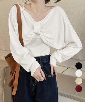 レディース カジュアル ニットアンサンブル ショート丈ニットトップス インナーキャミ2点セット 着回し 長袖プルオーバー大人可愛いニット秋 無地キャミソール 着やせセットアップ