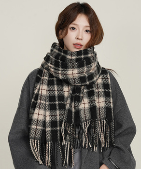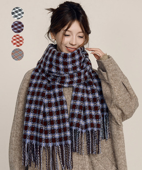 フリンジマフラー チェック柄 秋冬