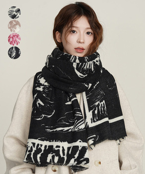 秋冬らしいベーシックなカラー展開、柔らかい素材感の花柄ストール。