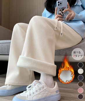 裏起毛の暖かいコーデュロイのワイドパンツ。