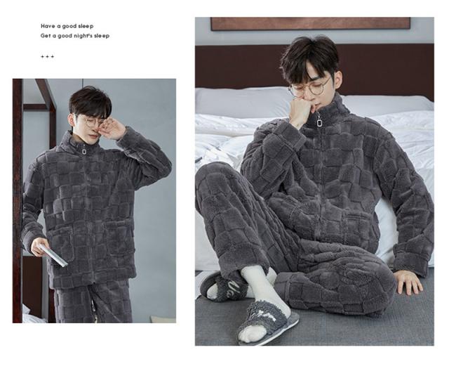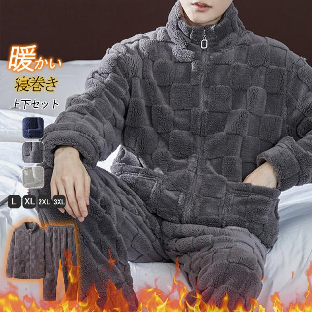 パジャマ メンズ ルームウェア 上下セット 厚手 もこもこ 立ち襟 前開き フランネル ナイトウェア 防寒 暖か 保温 部屋着 無