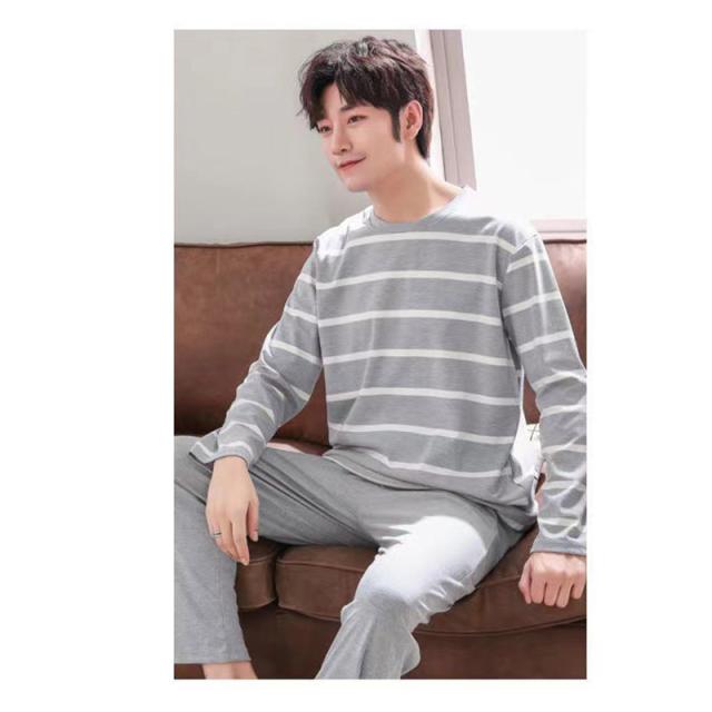 パジャマ メンズ 長袖 柔らかく軽い薄手の快適Tシャツ 上下セット ボーダー ルームウエア おそろい 父の日 体型カバー カジュアル 着心地 ゆったり