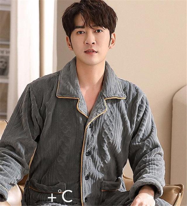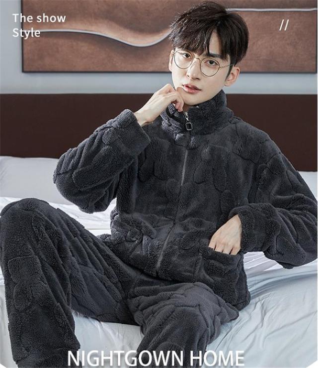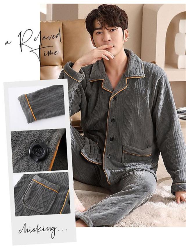 パジャマ メンズ ルームウェア 上下セット 厚手 長袖 長ズボン フランネル ナイトウェア 秋冬 防寒 暖かい 部屋着 無地 ギフ