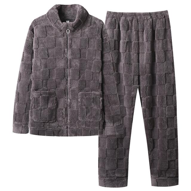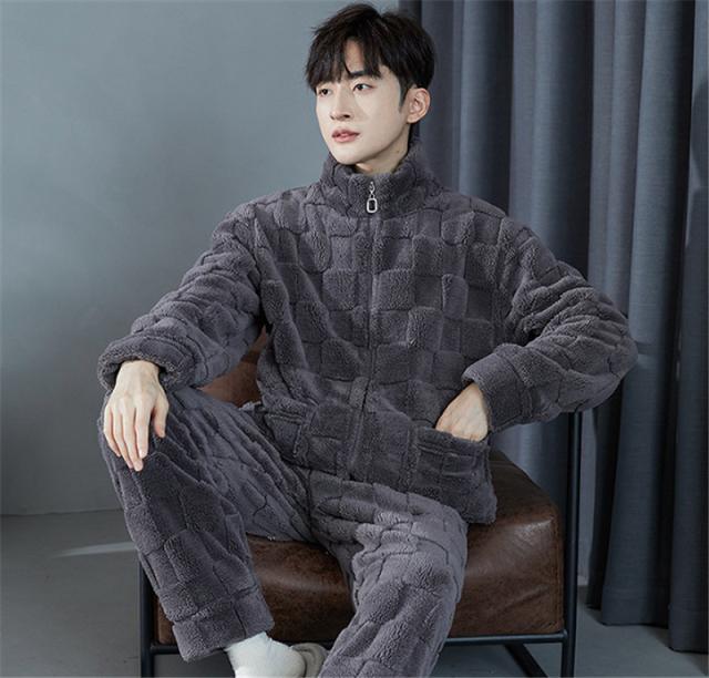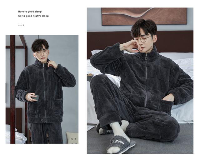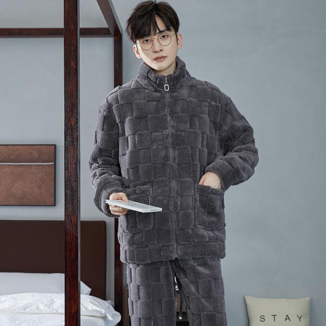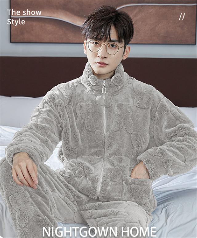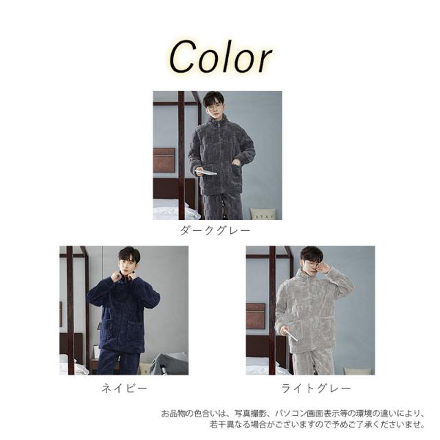 パジャマ メンズ ルームウェア 上下セット 厚手 もこもこ 立ち襟 前開き フランネル ナイトウェア 防寒 暖か 保温 部屋着 無
