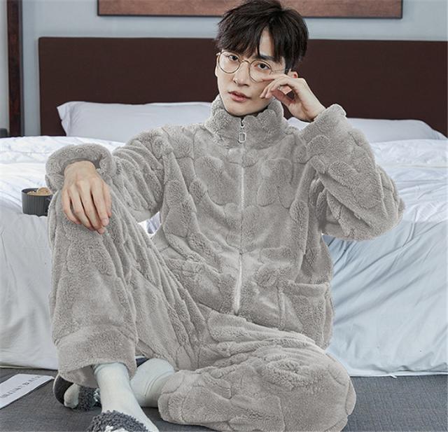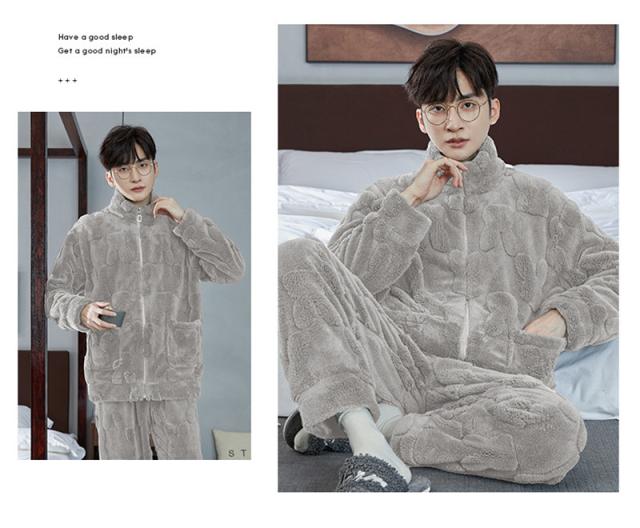 パジャマ メンズ ルームウェア 上下セット 厚手 もこもこ 立ち襟 前開き フランネル ナイトウェア 防寒 暖か 保温 部屋着 無