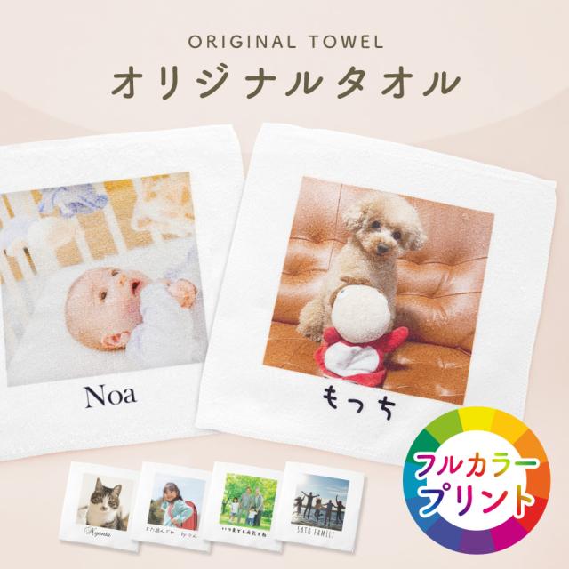 お気に入りのお写真をプリントしてつくるオリジナルタオル。 お名前などの文字も入れられるので自分だけのオリジナルがつくれます また、出産祝いなど記念日の贈り物に、様々なシーンで喜ばれます! | ||||||
