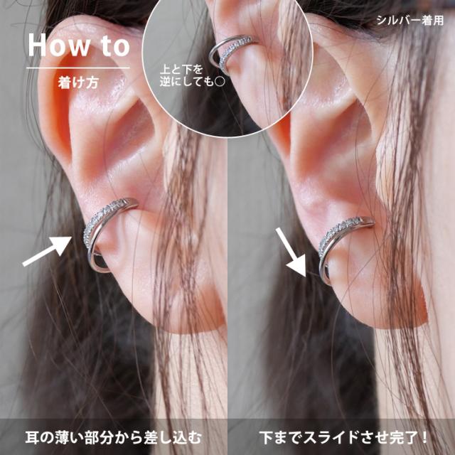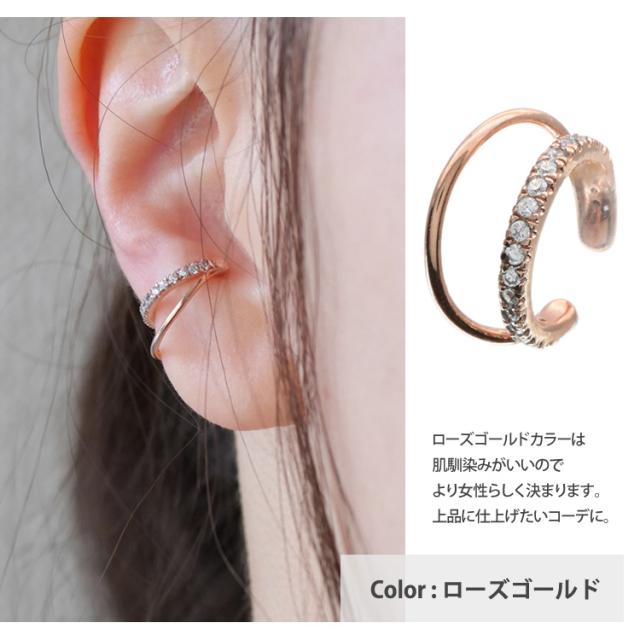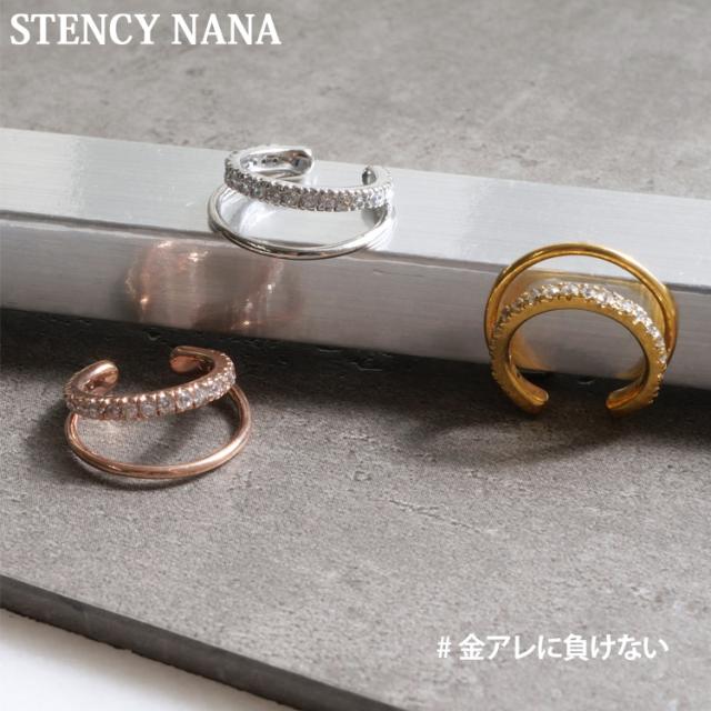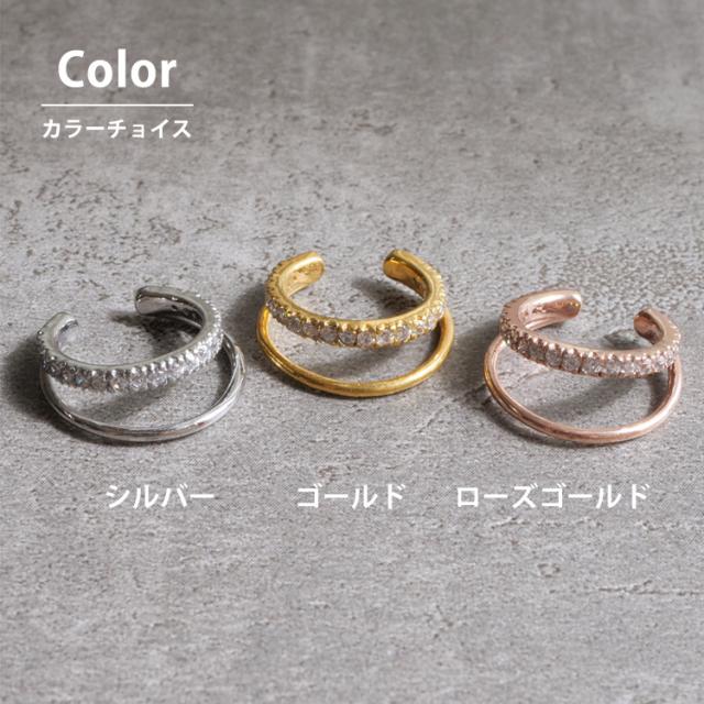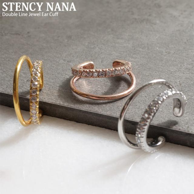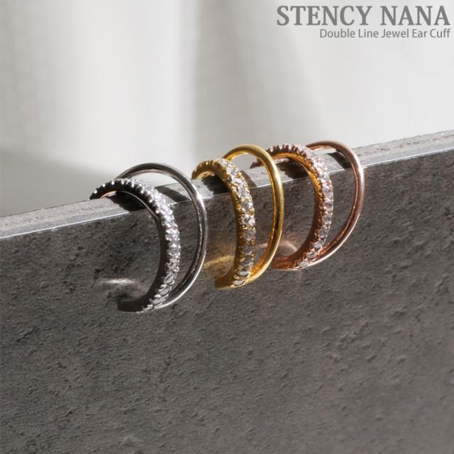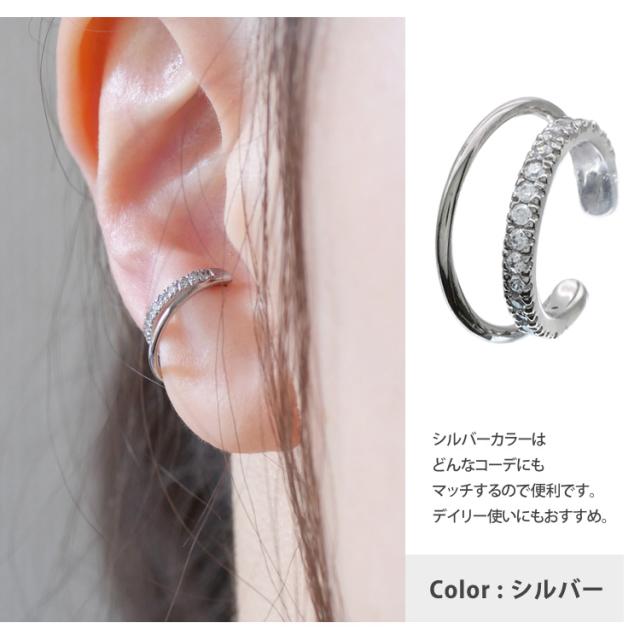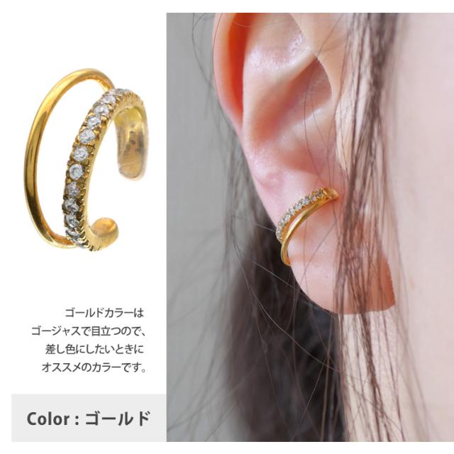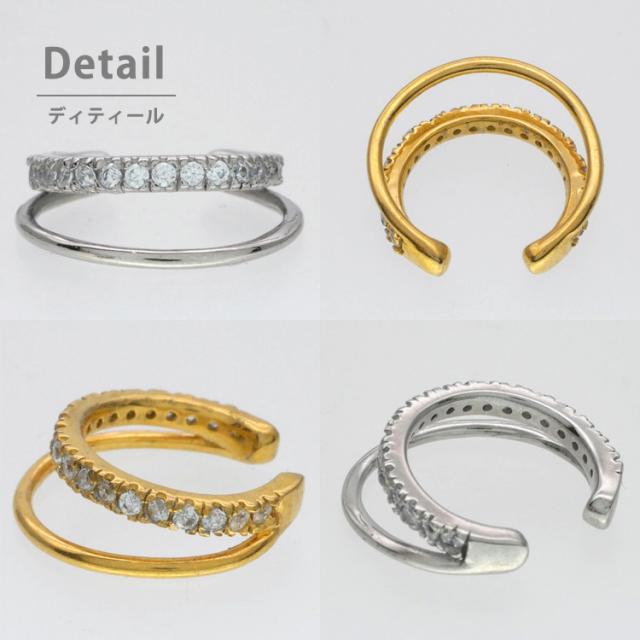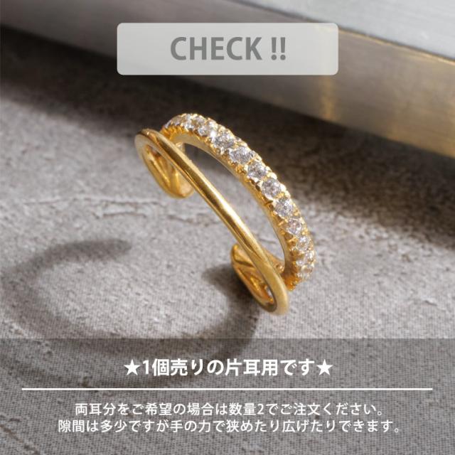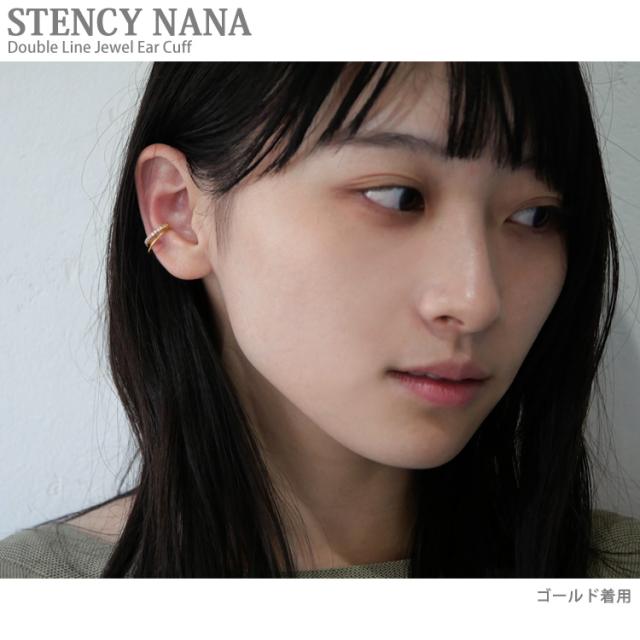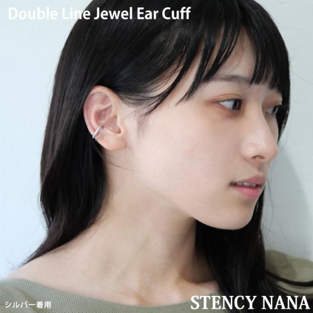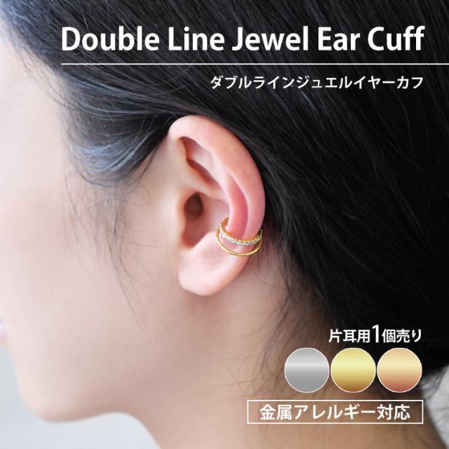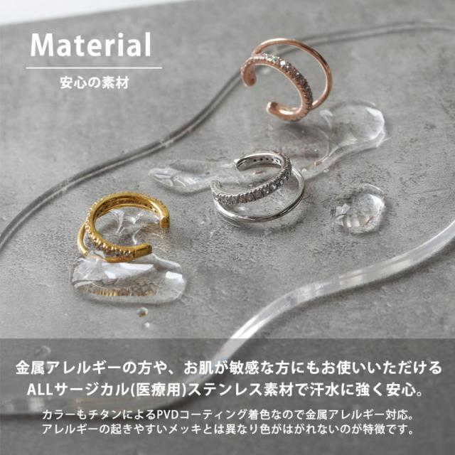 金属アレルギー対応 ステンレスイヤーカフ ダブルラインジュエルイヤーカフ 片耳用 イヤーフック 316L