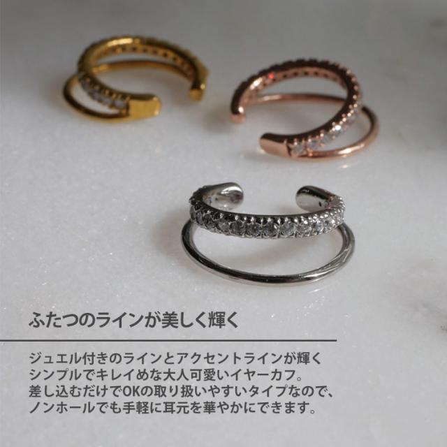 ジュエル付きのラインとアクセントラインが輝くシンプルでキレイめな大人可愛いイヤーカフ。