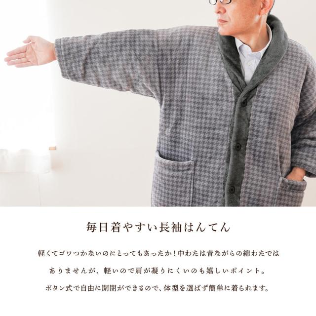 【4/5〜売り切り!490円値下!】はんてん 半纏 メンズ 暖か 襟付き マイクロファイバー ギフト プレゼント 紳士 フリー M L 大判 男女兼用 大きいサイズ LL 羽織もの 冬 暖かい 節電 GEORGE KENT 千鳥柄 おしゃれ 半天 袢纏 袢天