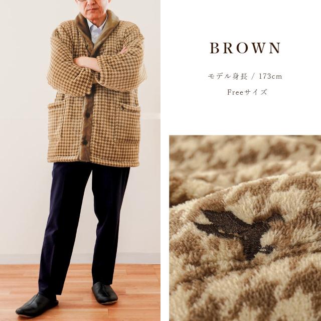 | ・あったかなめらか素材 表面はふんわりとした柔らかな手触りのマイクロファイバー素材を使用したふわもこプレミアムシリーズ。冬にぴったりなあったか素材です。裏面は中綿入りなのでじんわり身体をあたためます。 ・高級感溢れる大人カジュアルな千鳥柄千鳥柄の独特な模様と洗練された雰囲気で、羽織るだけでお洒落で上品な印象を演出します。大人カジュアルなデザインでチャコールグレーとブラウンの2色をご用意しました。 ・毎日着やすい長袖はんてん軽くてゴワつかないのにとってもあったか!比較的重い線わたを使用していないため、軽くて肩が凝りにくいのも嬉しいポイント。ボタン式で自由に開閉ができるので、体型を選ばず簡単に着られます。 ・女性でも着られるサイズゆったりとしたフリーサイズ設計なので、女性の方にも快適にご着用いただけます。カップルやご夫婦でのペアコーディネートもおすすめです。お揃いを着ることで、二人の時間をより温かく、特別な時間に。贈り物としても喜ばれること間違いなしです。 ・GEORGE KENTジョージケントは、英国紳士の代表ともいえる英国王ジョージと英国南東部にあった古の王国の「KENT」から古き良き時代をイメージさせるブランドとして誕生しました。 | |