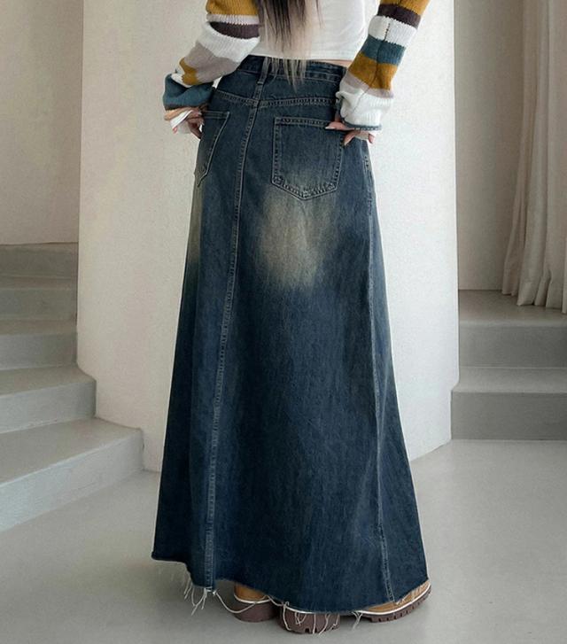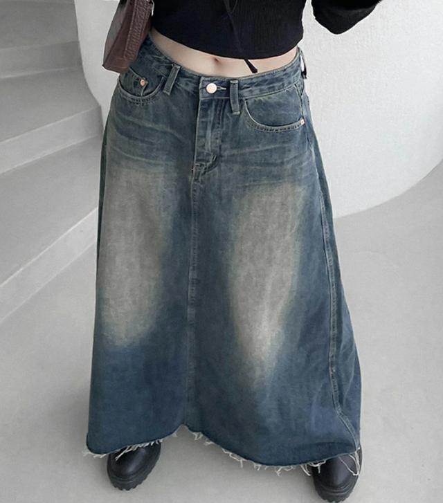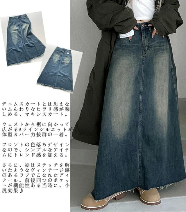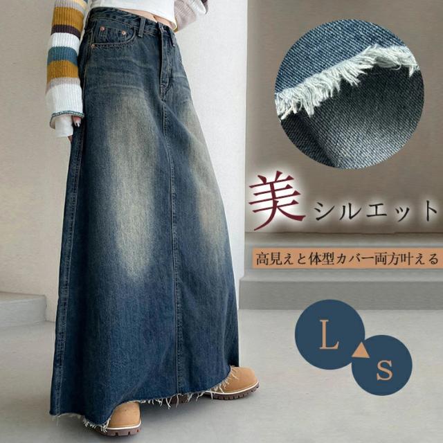 デニム ロングスカート レディース 春秋 デニムスカート ロング 大きいサイズ デニムロングスカート ハイウエスト マキシ丈 スカート 綿 コットン Aライン ロングスカート 色落ち aラインスカート ロング丈 体型カバー