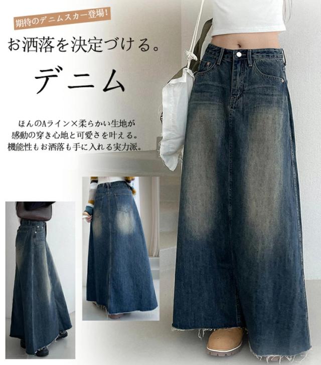デニムスカート ロングスカート デニム マキシ スカート デニムロングスカート aラインスカート