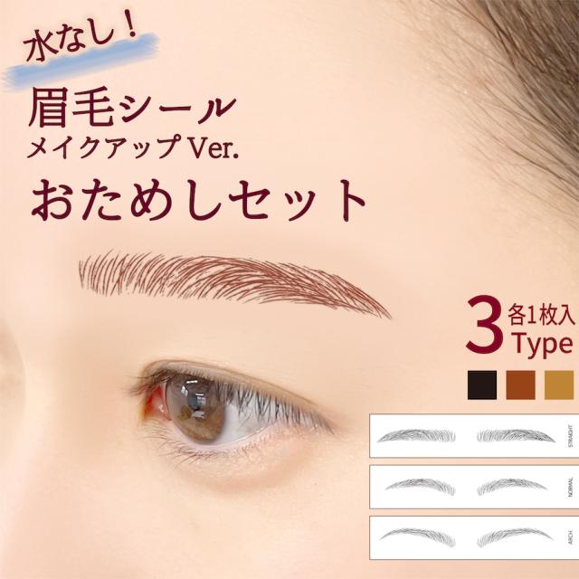 \おためしセット/ メイクアップ眉 水なしで貼れる 眉毛シール アイブロウ タトゥーシール アートメイク 眉毛ステッカー 時短 医療用 レディース メンズ お試し