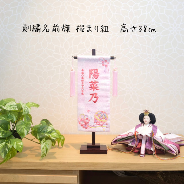 名前旗 | 徳織 桜まり紐(白桃)小 高さ38cm | 雛人形 桃の節句 女の子 かわいい おしゃれ 出産祝い | <No.TU07-200690>