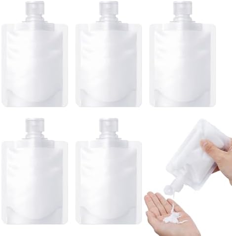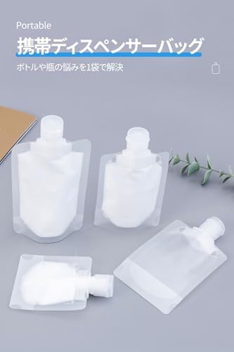 パウチ容器 旅行 便利グッズ タレパック 5点セット 旅行用リキッドパウチ 小袋容器 ポーチ トラベルボトル 詰め替えボトル 持ち運び 詰め替え容器 クリーム ローション 保存 シャンプー ボトル 透明 密封 容量 (50ml) オープン