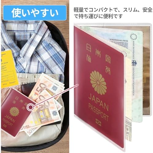 【使いやすい】パスポートホルダーは、大切なパスポートを収納・保護する、入れやすく使いやすいカードホルダーです。軽量、コンパクト、スリムで安全、持ち運びも簡単です。標準的なサイズで、取り出しやすいデザインです。あらゆる傷や汚れからパスポートを守ります。透明度の高いPVC素材を使用し、バッグの中でも見つけやすくなっています。