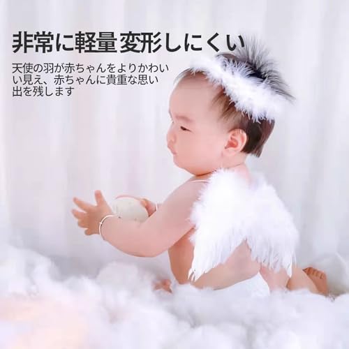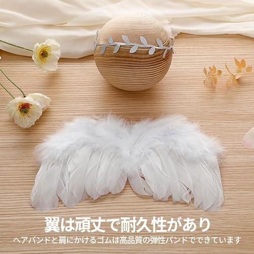 天使の羽 ハーフバースデー 新生児 かわいい 天使 コスチューム ベッドタイム アート ヘアバンド 天使セット 新生児撮影 小道具 舞台写真 ホワイト