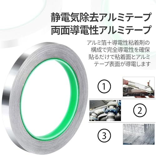 【Features】 アルミテープ 耐熱テープ 導電性アルミテープ 両面導電 耐熱 防水 強粘着 導電性アルミテープ 静電気除去 厚手アルミテープ(長さ20m×幅10/20mm×厚さ0.1mm)