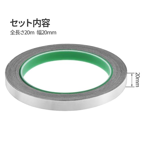 【サイズ】長さ20m×幅10mm×厚さ0.1mm/長さ20m×幅20mm×厚さ0.1mm。材質:アルミ箔、導電性アクリル系粘着剤。色:シルバー。