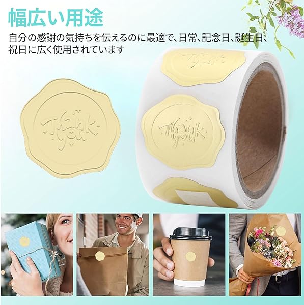 【幅広い用途】 感謝の気持ちを伝えるのに理想的で、日常生活、記念日、誕生日、休日など幅広く使用されています。ビジネスシーンだけでなく、文通、パーティー、ホリデーにも。 また、誕生日プレゼントのラッピング、手作りキャンディのデコレーション、ご褒美シール、ケーキ箱のデコレーション、グリーティングカードのデコレーション、封筒の封印などにも最適です。感謝という特別な感情を簡単に強調することができます。
