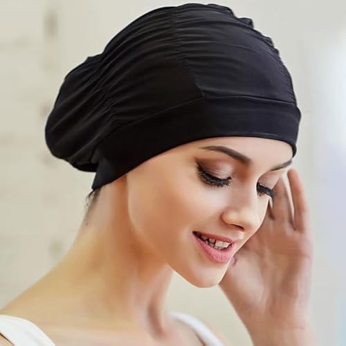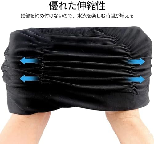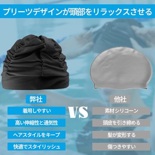 水泳帽子 プール 帽子 水泳帽 女 大人 ファッション 通気性 プリーツ 水泳キャップ ふわふわ 長い髪対応 ストレッチ 無地 ニュートラル 水泳 キャップ ブラック