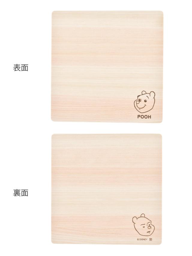 まな板 木製 正方形 くまのプーさん Funny Faces ひのき リバーシブル ( まないた ひのきのまな板 日本製 天然木 四角 角型 カッティングボード 両面仕様 薄型 軽量 木製まな板 桧 軽い 可愛い )