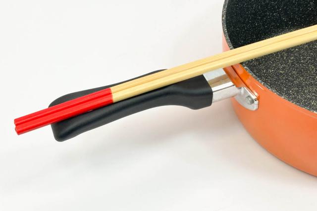 ハンドルに菜箸が置けるくぼみがあるので、調理中の一時置き場に便利です。