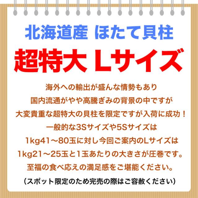 【超特大】ホタテ 貝柱 1kg 前後 (21〜25玉前後) 北海道産 ほたて 帆立 刺身 玉冷 生食 海鮮丼 寿司 新鮮急速バラ凍結で取出し楽です