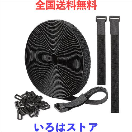 AiQInu マジックテープ バンド 自由カット 6M×2cm 結束バンド 30個バックル付き マジックテープ ベルト 配線整理 面ファスナー 固定ベル