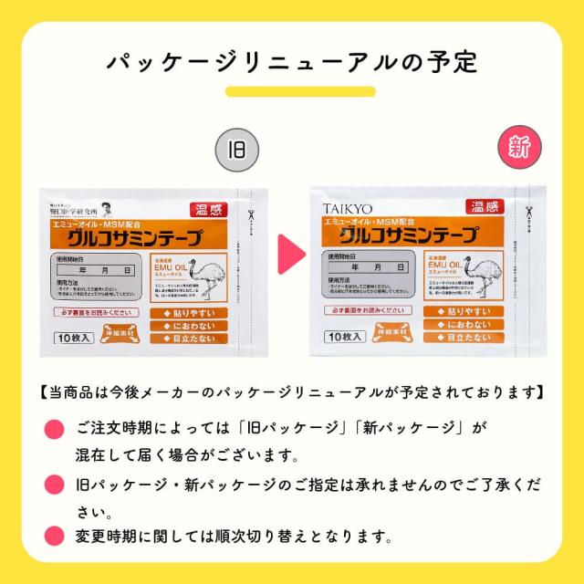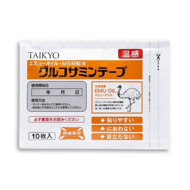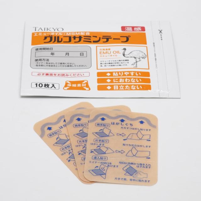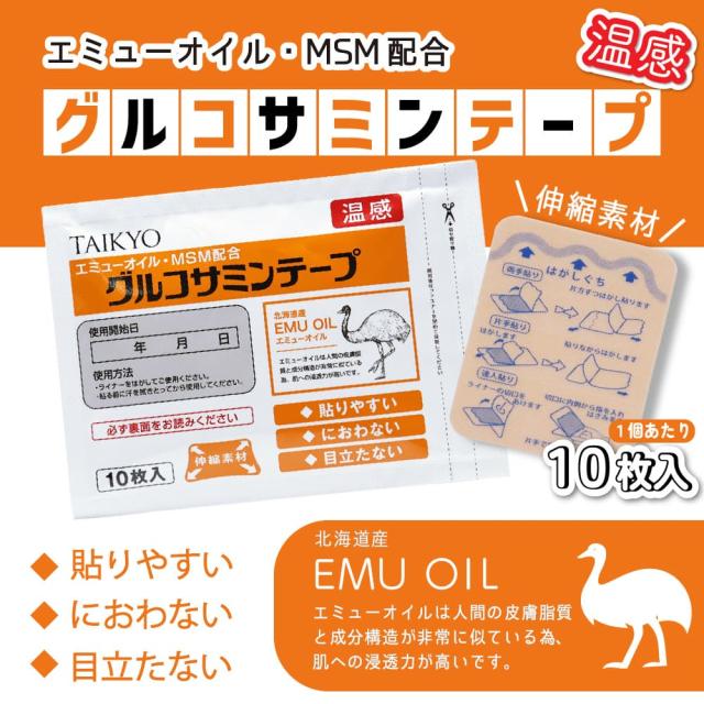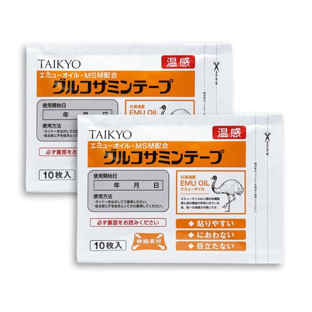 グルコサミンテープ 温感 エミューオイル・MSM配合 10枚入 ×2個 伸縮素材