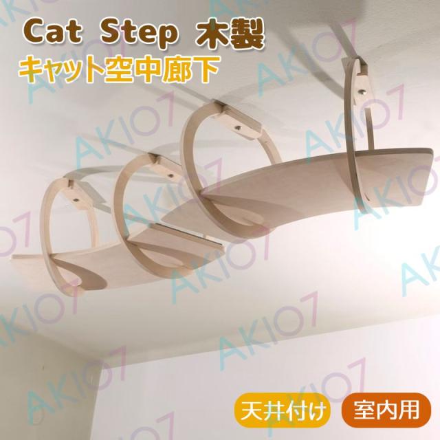キャット空中廊下 猫 壁掛け 天井付け 吊り橋 木製 猫用ステップ ペットベッド 遊び場 はしご ストレス解消 運動不足 組み立て簡単