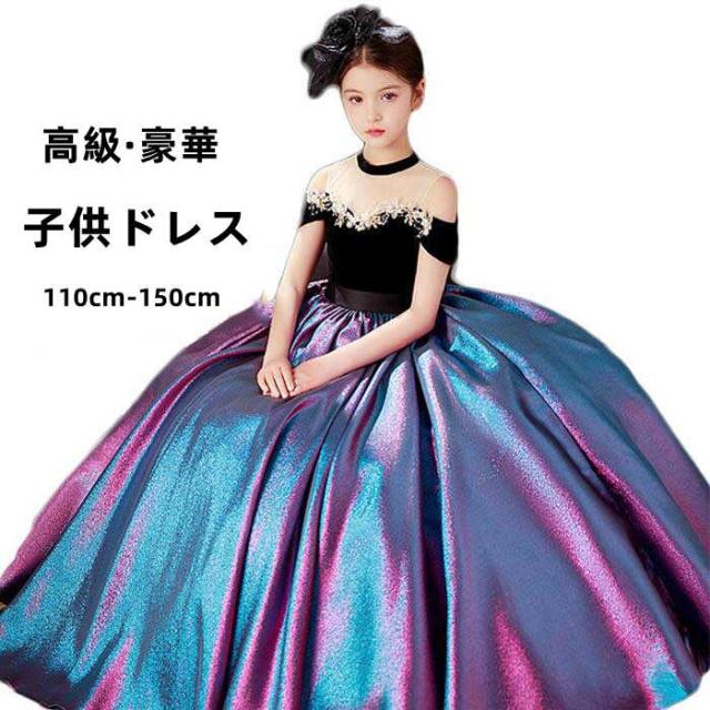商品名:キッズドレス 発表会ドレス ロングドレス 子供ドレス フォーマルドレス こどもドレス パーティードレス ジュニアドレス ピアノ 発表会 結婚式 七五三 演奏会 お呼ばれ イベント ステージ衣装 大きい裾 高級感 豪華 上品 110cm 120cm 130cm 140cm 150cm