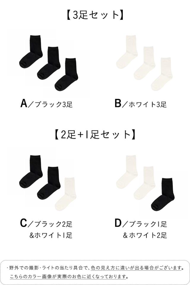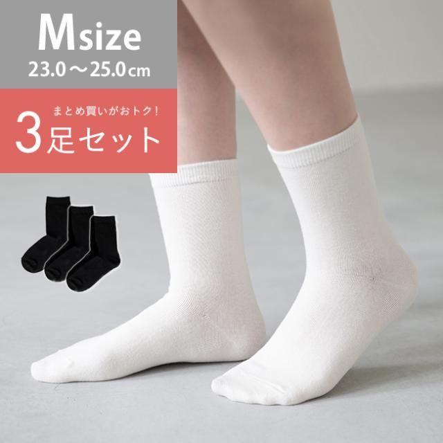 ソックス 靴下 レディース 無地 シンプル ミドル丈 クルー丈 クルーソックス 3足セット メール便対象商品 試着チケット対象外