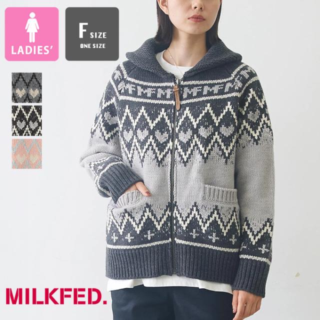 「 MILKFED. ミルクフェド 」 COWICHAN KNIT JACKET カウチン ニット ジャケット 103244015002 / MILKFED. ミルクフェド カウチンセーター ニット セーター ジップアップ ジャガード カジュアル ガーリー ストリート 2024AW