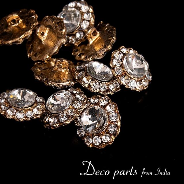 【10個入】インドのビジュー ボタン型デコパーツ 小 クリスタル / ボタン、手芸、デコパーツ、手芸、アップリケ、刺繍、ミラー、ビーズ、ハンドメイド 布とファブリック 【インドとアジアンの布