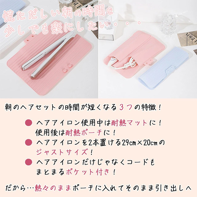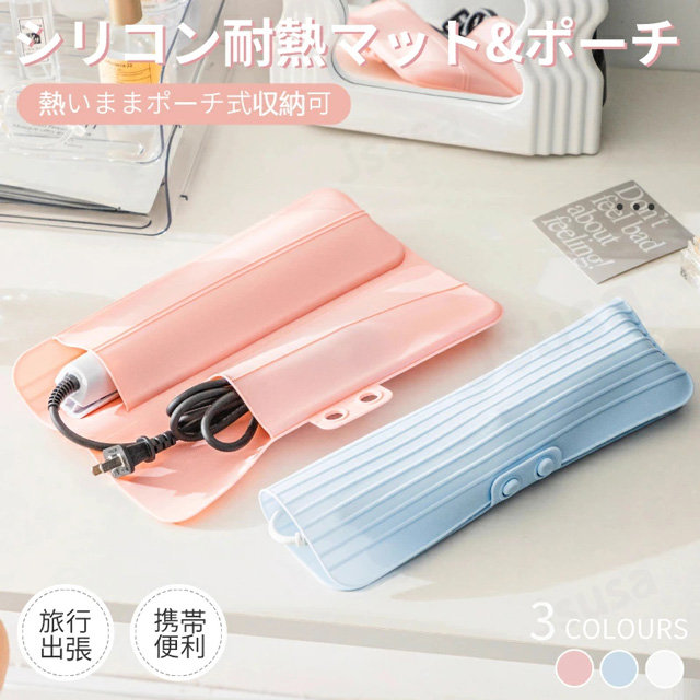 「クーポン配布中」「即納」 耐熱ヘアアイロンマット & ポーチ シリコン製 ヘアアイロン マット ヘアアイロンカバー ヘアアイロン カバー ヘアアイロンポーチ ヘアアイロン ポーチ ヘアアイロンケース ヘアアイロン ケース シリコンケース