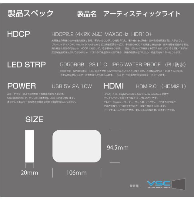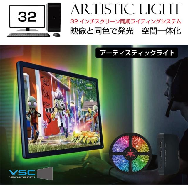 PC ゲーミングモニター モニター VSC アーティスティックライト【32インチ用】ASL3200 | ゲーミングライト テレビ裏 LED イルミ ライト RGB USB ディスプレイ カスタム イルミネーション イルミライト アクセサリー デスクライト ゲーミング ゲーミングPC モニターライト