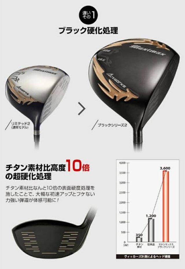 ワークスゴルフ マキシマックス ブラックシリーズ2 ドライバー ルール適合 シャフト:三菱ケミカル プレミア飛匠・極 カーボン 46インチ ゴルフクラブ R / SR / S 9.5度 / 10.5度