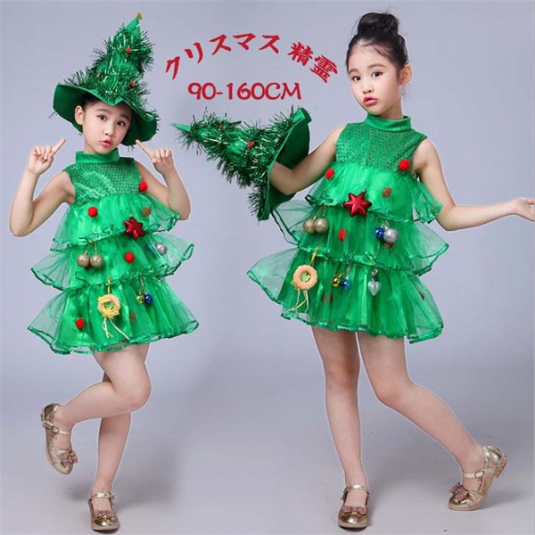 クリスマス サンタ 精霊衣装 子供コスプレ イベント パーティー クリスマスパーティー キッズ 女の子 可愛い コスチューム コスプレサンタ 女児 ワンピース グリーン aa073z7z7m5