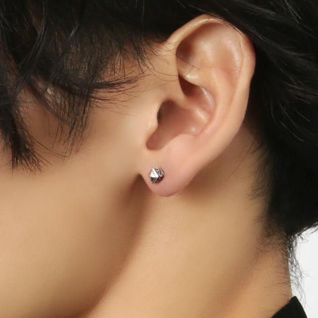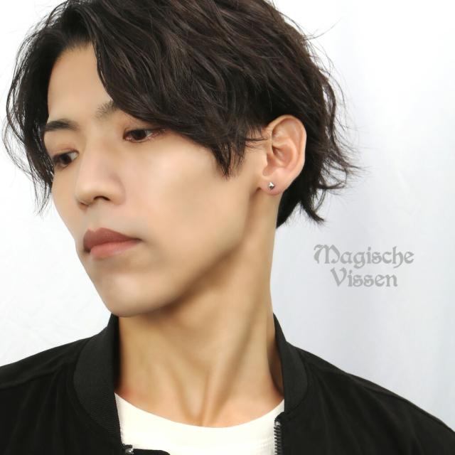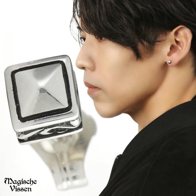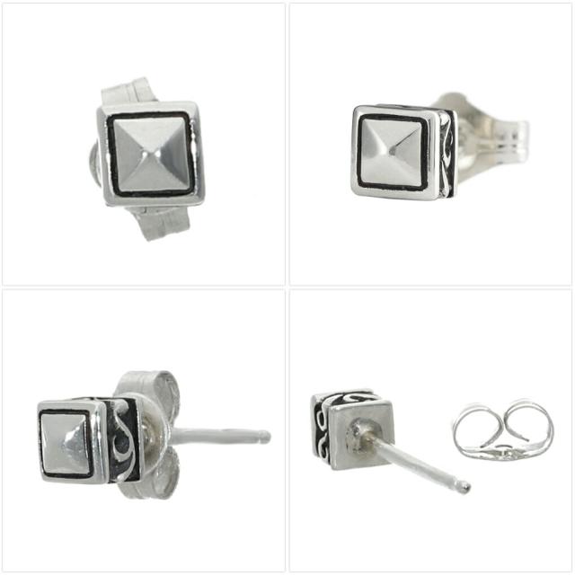 スクエア スタッズ ピアス 1P 片耳用 シルバー 925 四角形 ピラミッド型 シンプル さりげない かっこいい きれいめ セミハード シルバーピアス