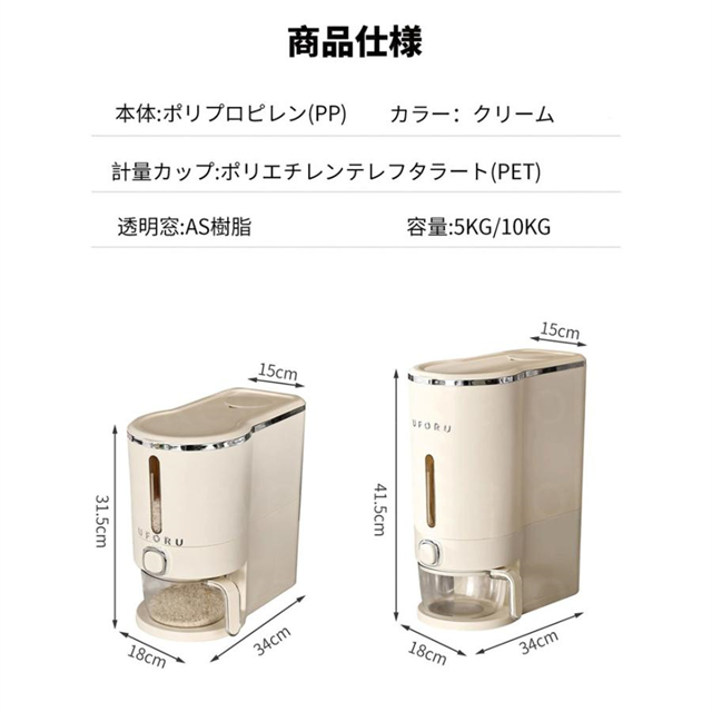 【大容量】5 KGサイズ:34*15*31.5 cm、10 KGサイズ:34*15*41.5 cm。